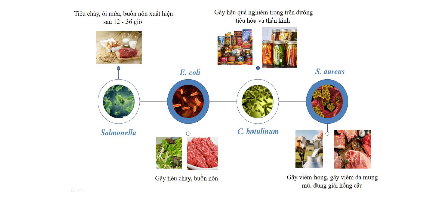 Hình 1: Một số vi sinh vật gây ngộ độc nghiêm trọng có trong thực phẩm