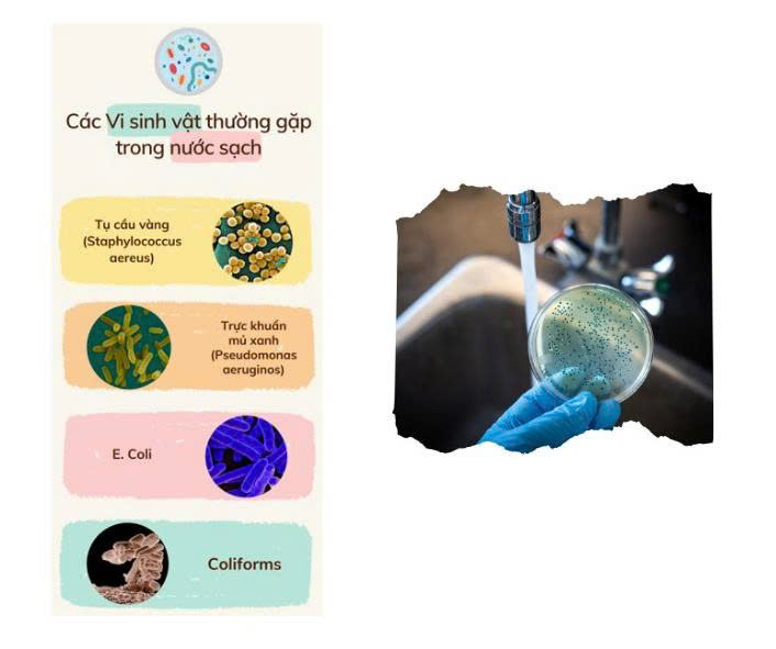+ Chỉ tiêu vô cơ: pH, Độ đục, Nitrat, nitrit, sulfate, clo dư, độ cứng, amoni